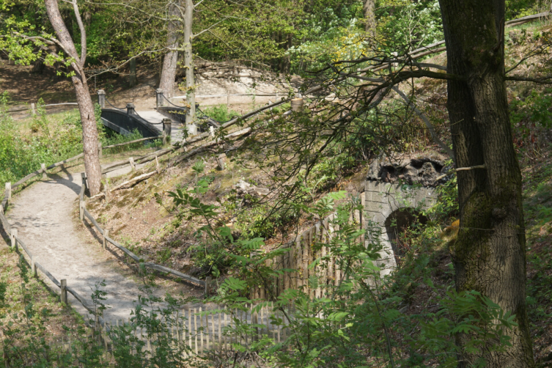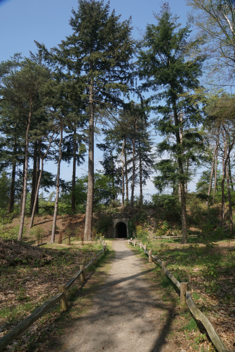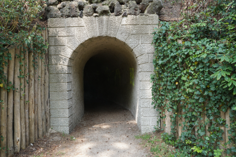 Van de grond die vrijkwam bij het uitgraven van de vijver bij het theehuis werd een aarden wal gemaakt. Hierin zijn drie tunneltjes gemaakt. Twee hiervan zijn wandeltunneltjes en door de middelste loopt een kanaaltje en daar kon dus met een bootje doorheen gevaren worden.