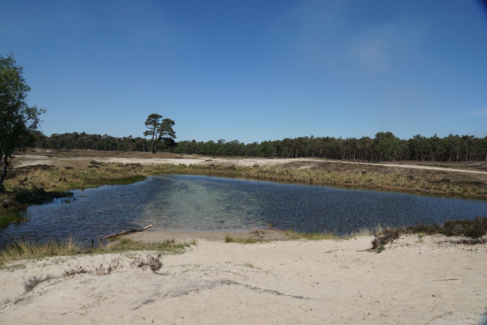 Hierboven en hiernaast de restanten van een betonnen perronnetje. Op de meest rechter foto staat op de achtergrond een vennetje dat in het verleden als zwembad diende.